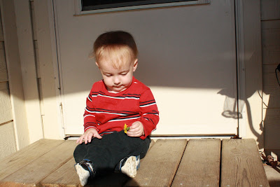 A couple of weeks ago Seth gave me his first flower! My heart melted and I could have cared less that it was actually a weed. However, not too long after that he wanted it back and he held on to it for at least an hour!